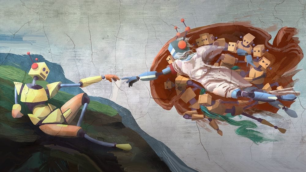 A man and a robot running