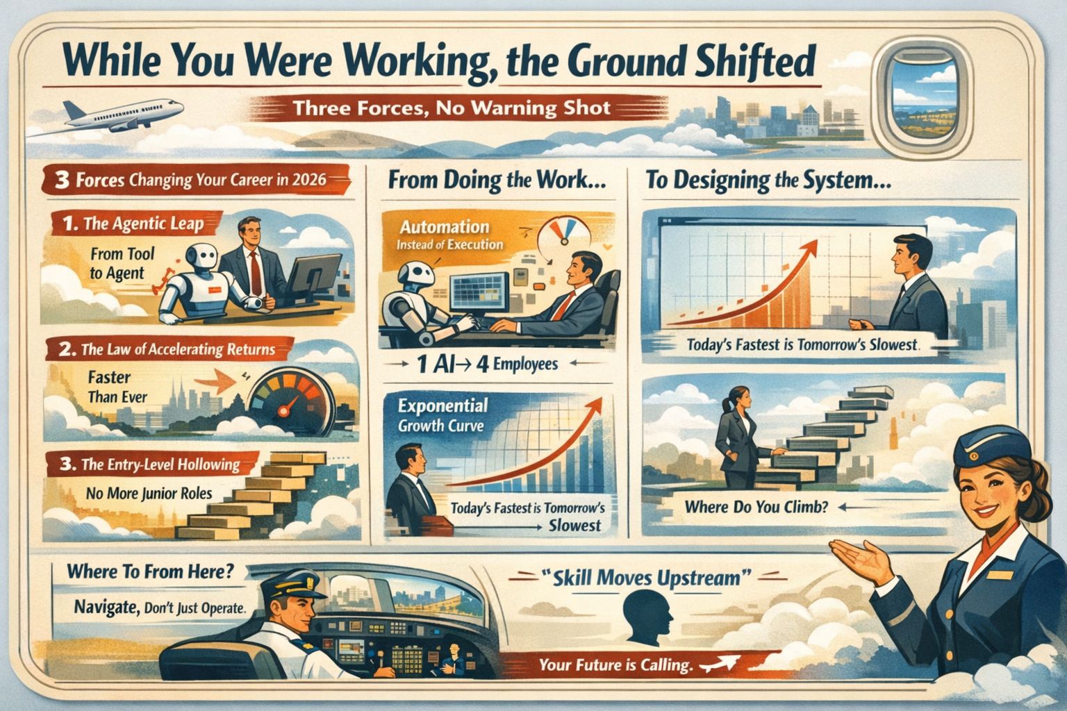 ✅ The three forces compressing professional value: the Agentic Leap, Accelerating Returns, the Entry-Level Hollowing